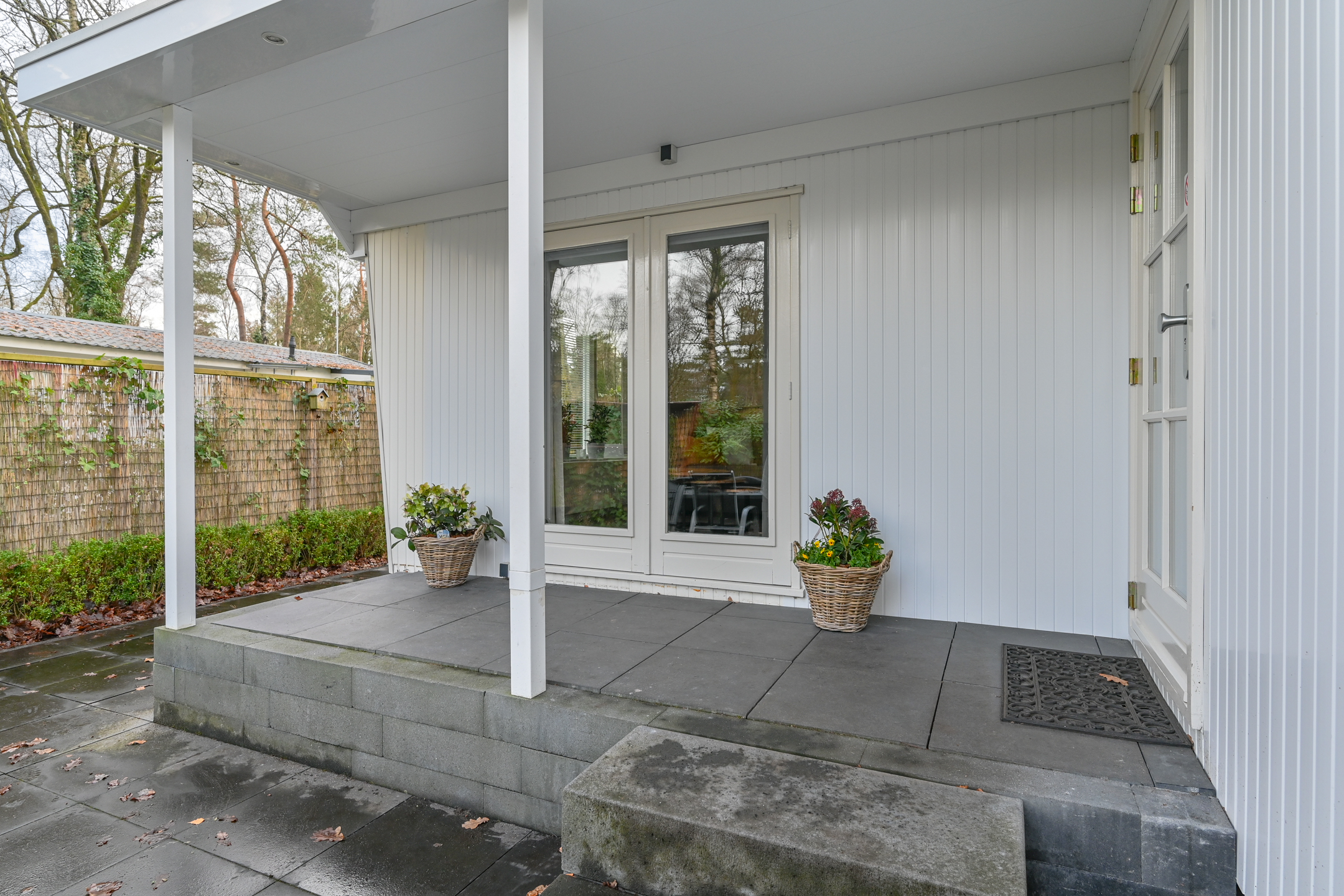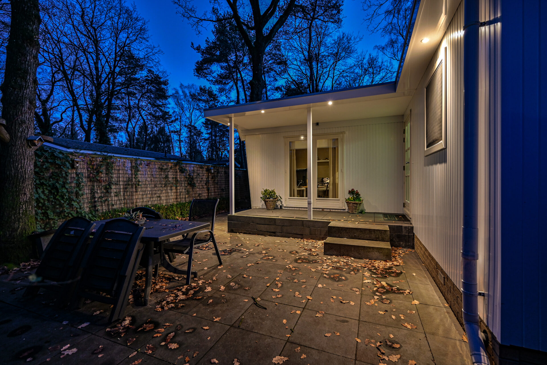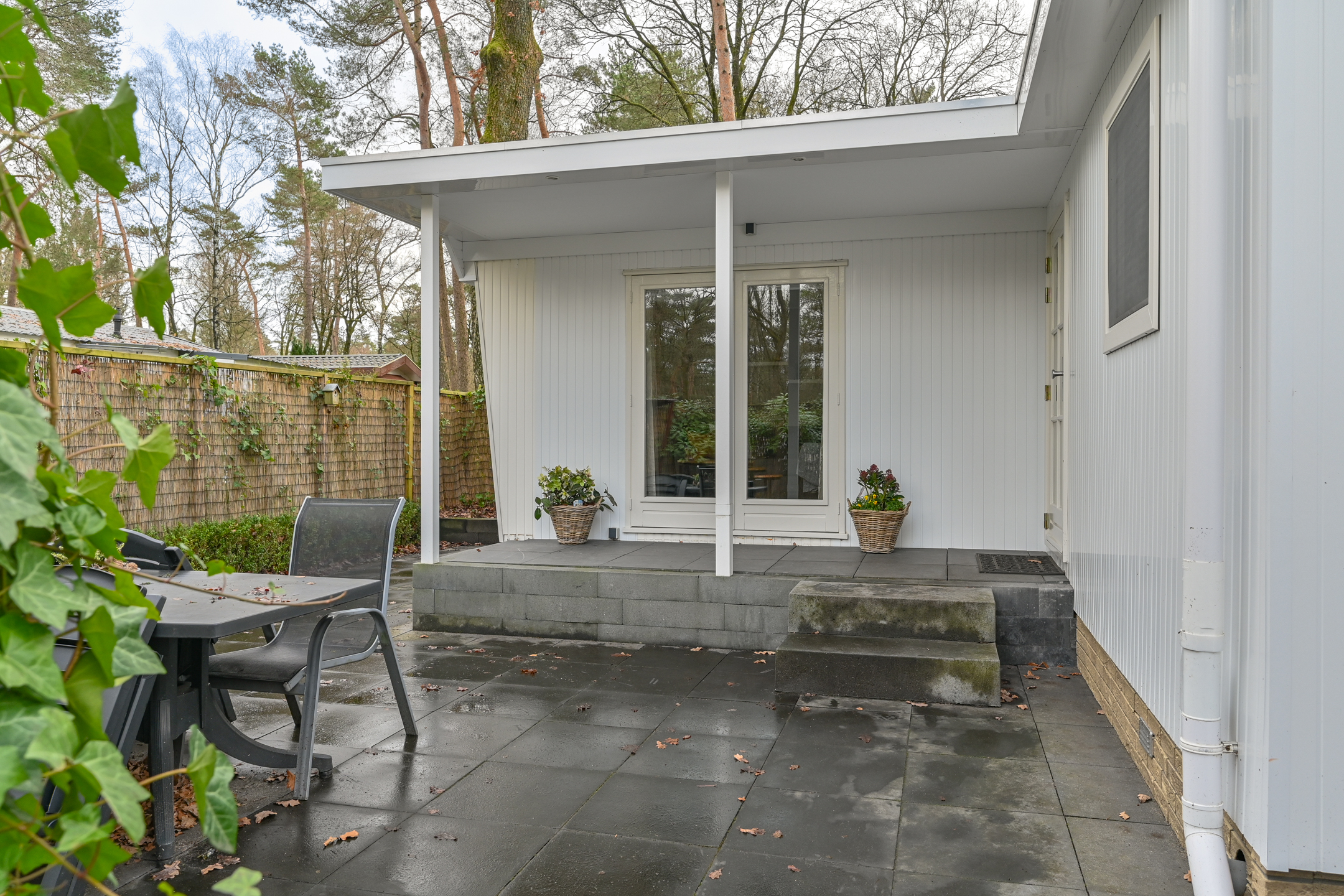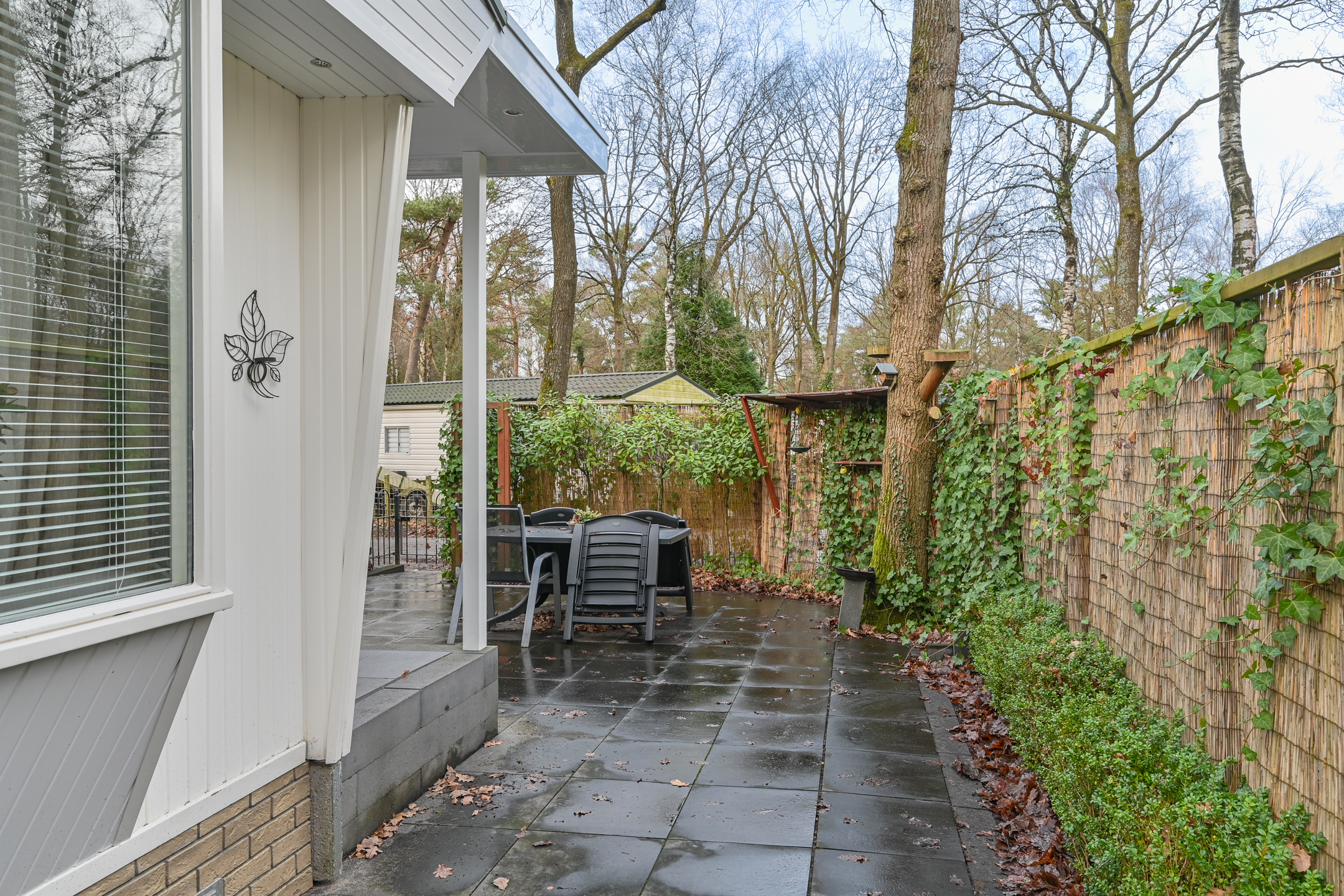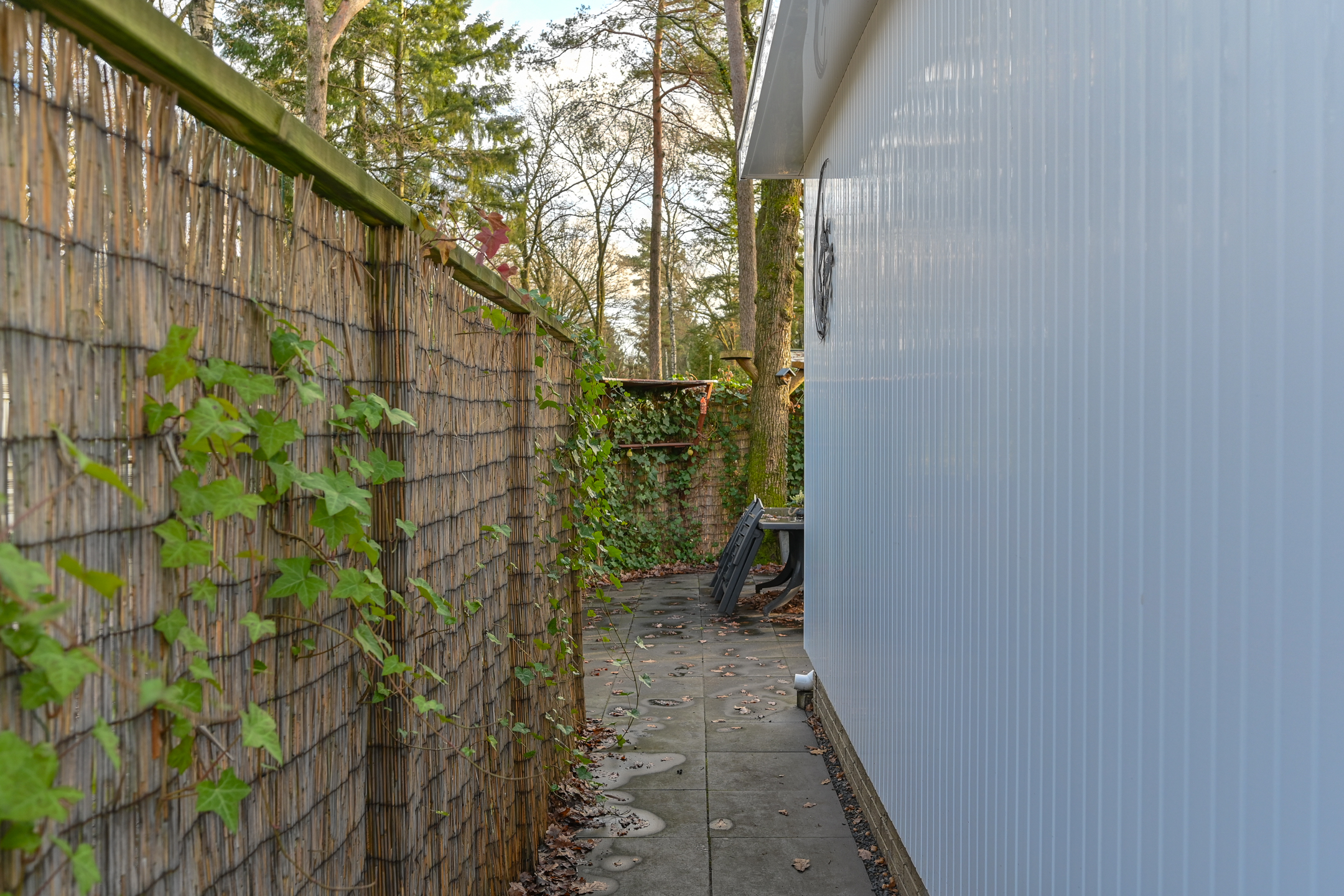 In de tuin staat een tuintafel met 4 stoelen om in de zomermaanden lekker buiten te kunnen eten. De tuin is afgeschermd met bamboe en klimplanten waardoor er genoeg privacy is.