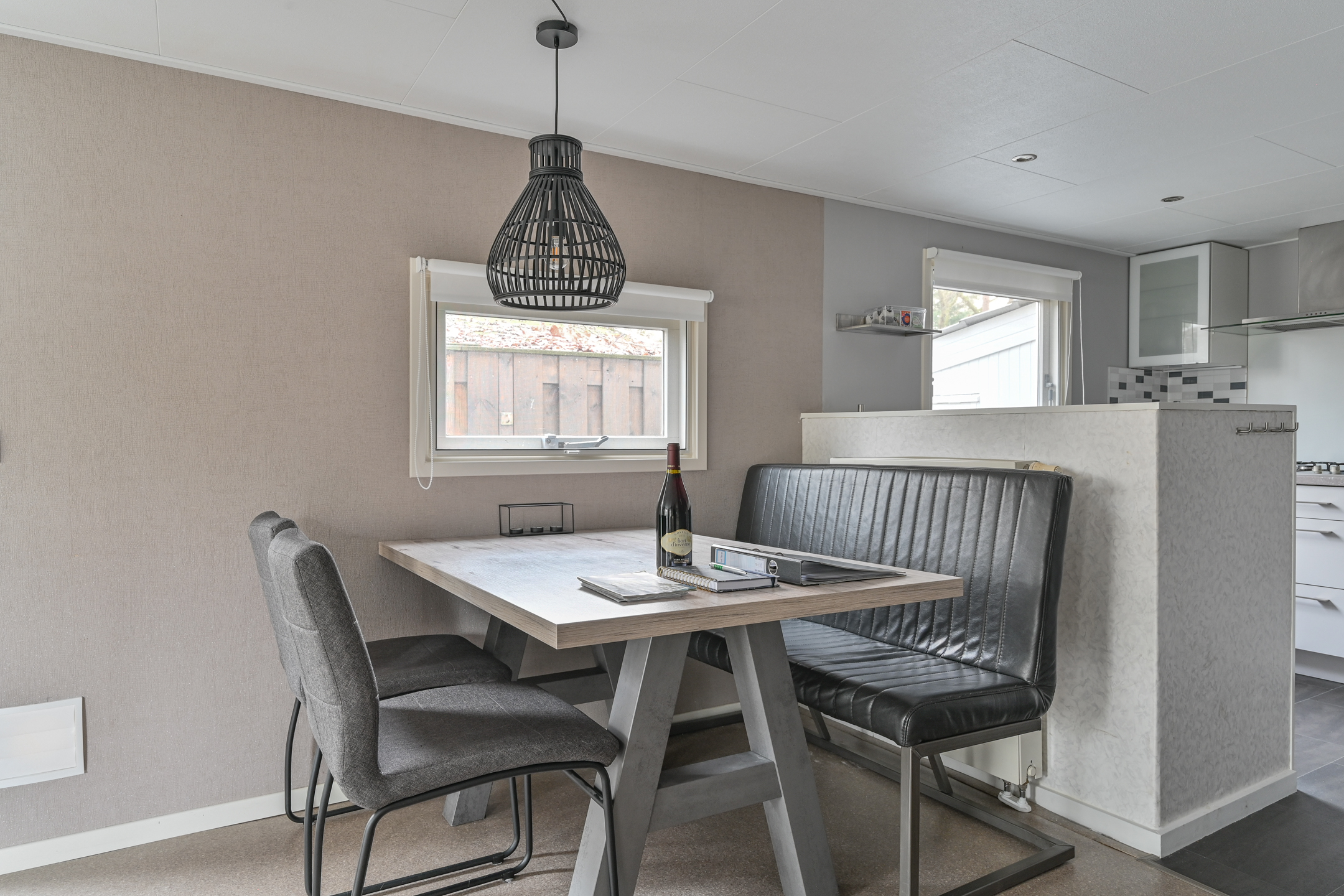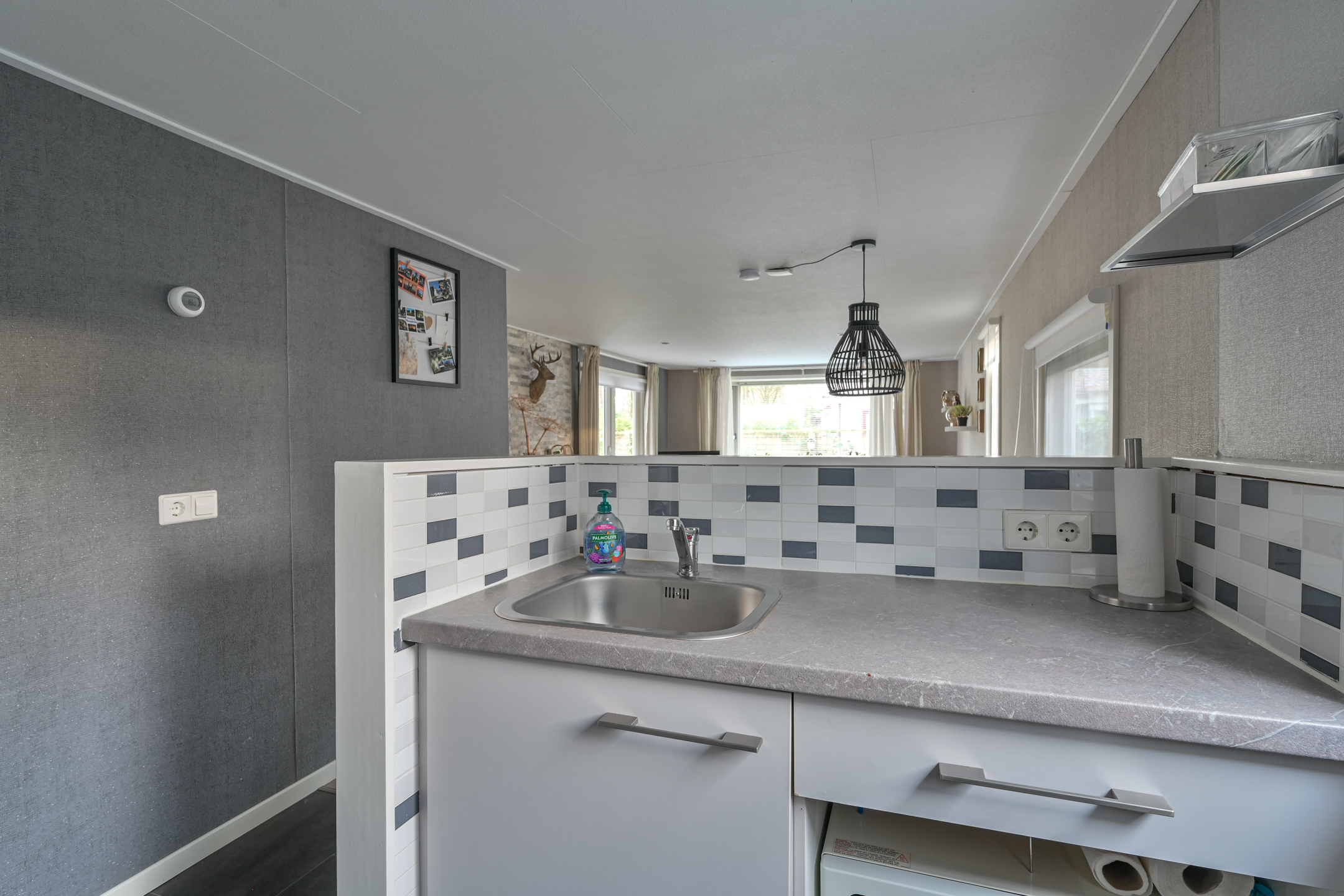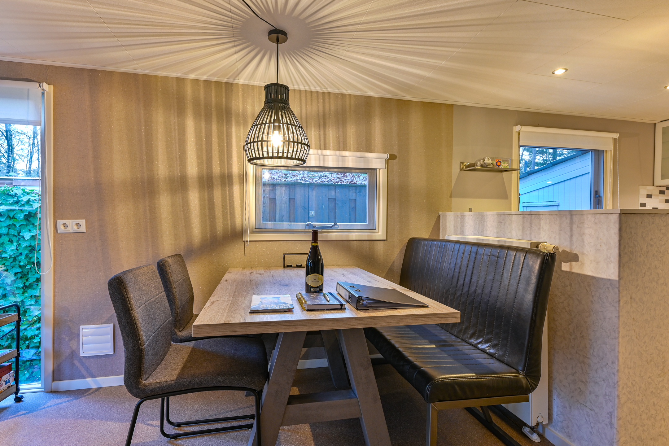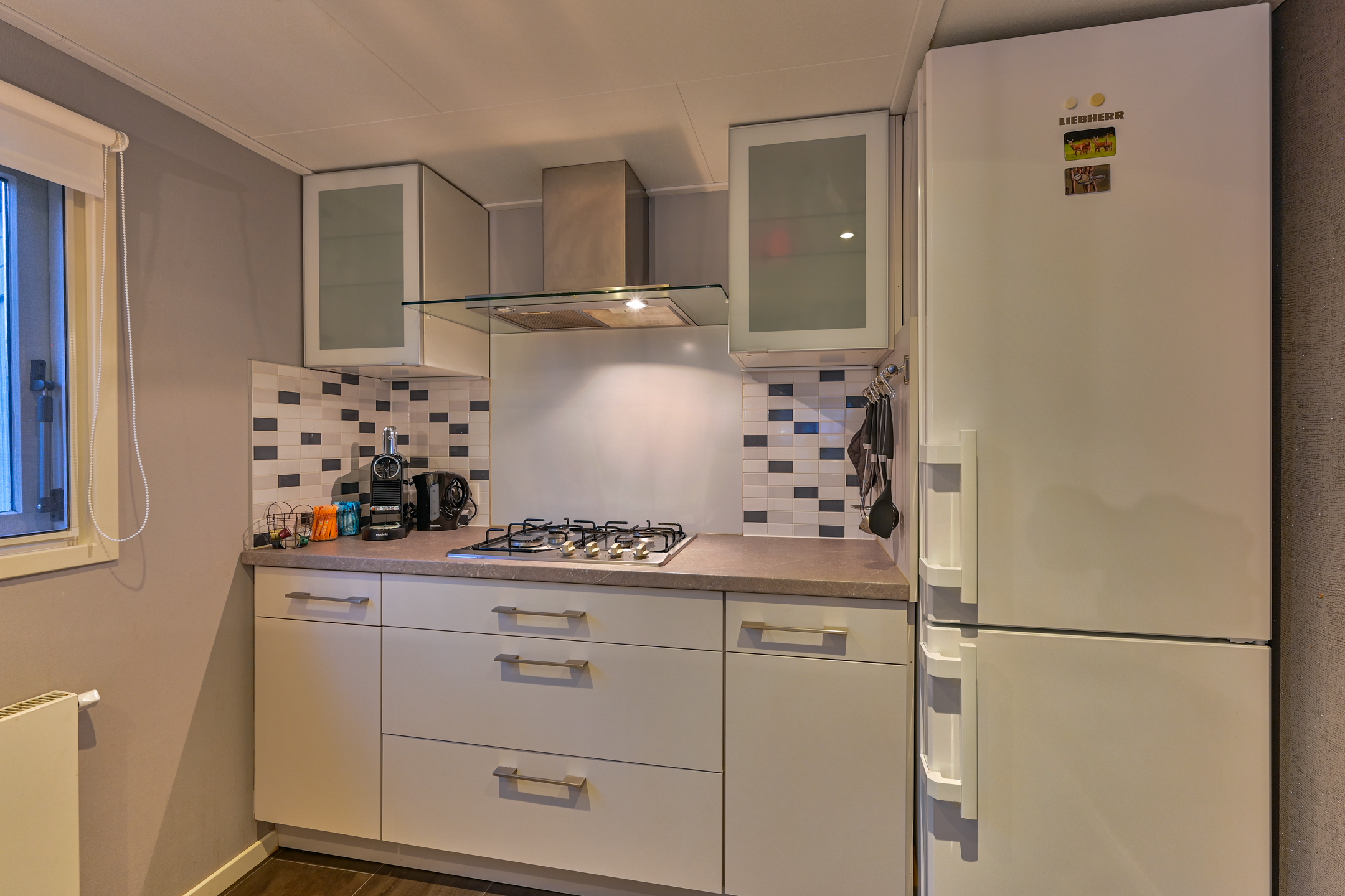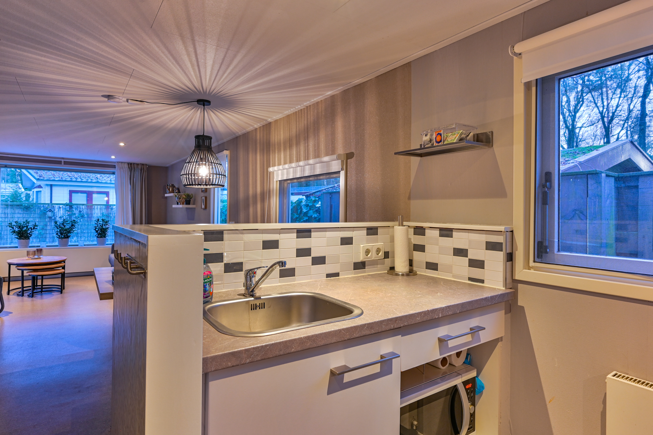 Binnen is een sfeervolle ruime woonkamer en keuken met alles erop en eraan. vanuit de hal met kapstok bereikbaar; toilet badkamer met douchecabine en wastafel meubel, ruime slaapkamer met (160 x 200) met grote kledingkast en 2e slaapkamer met stapelbed en kledingkast.