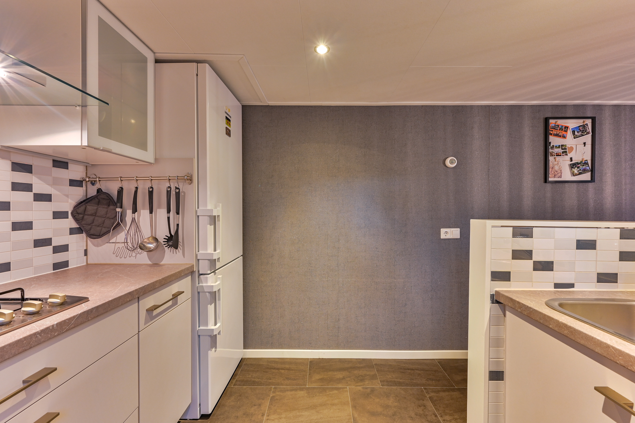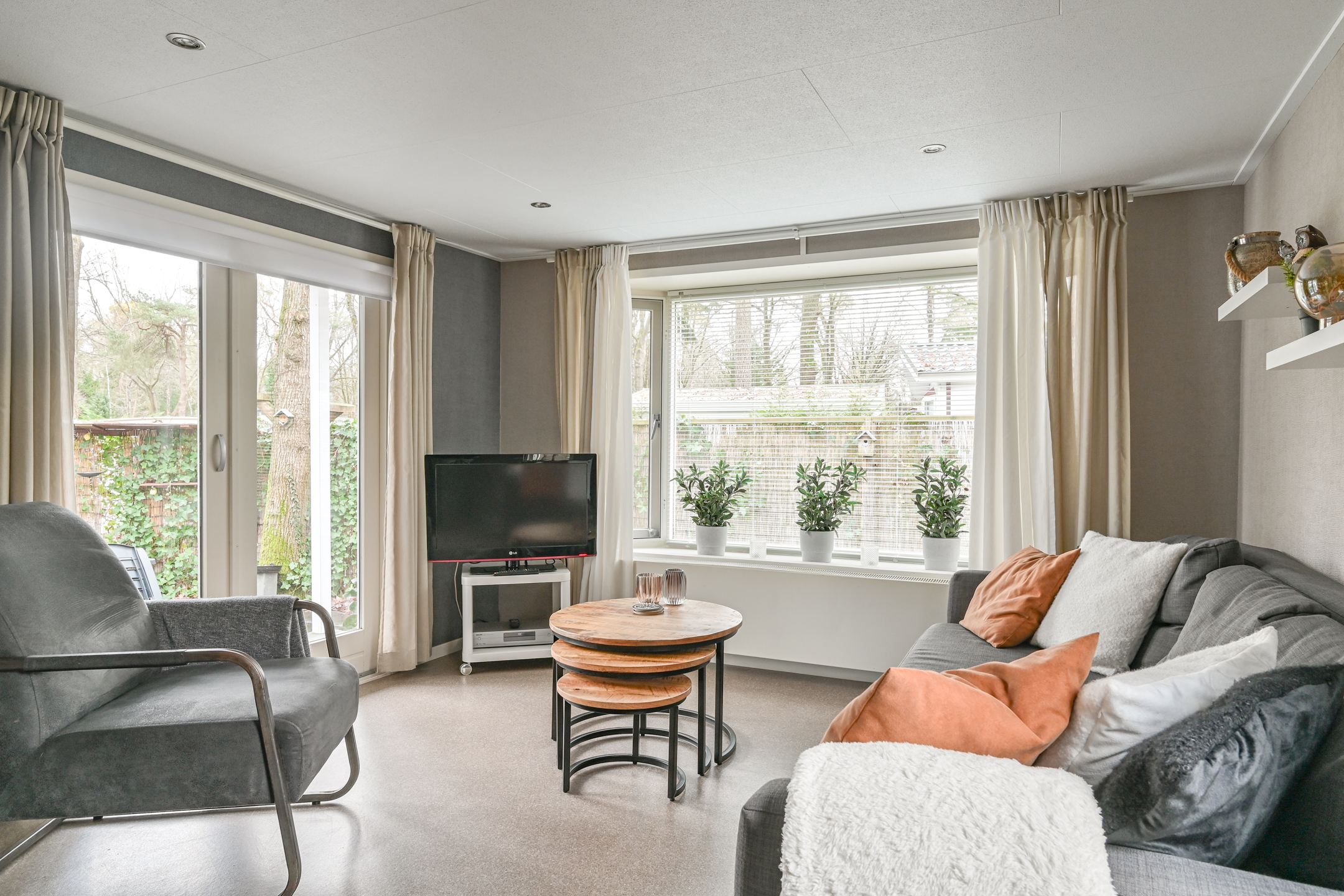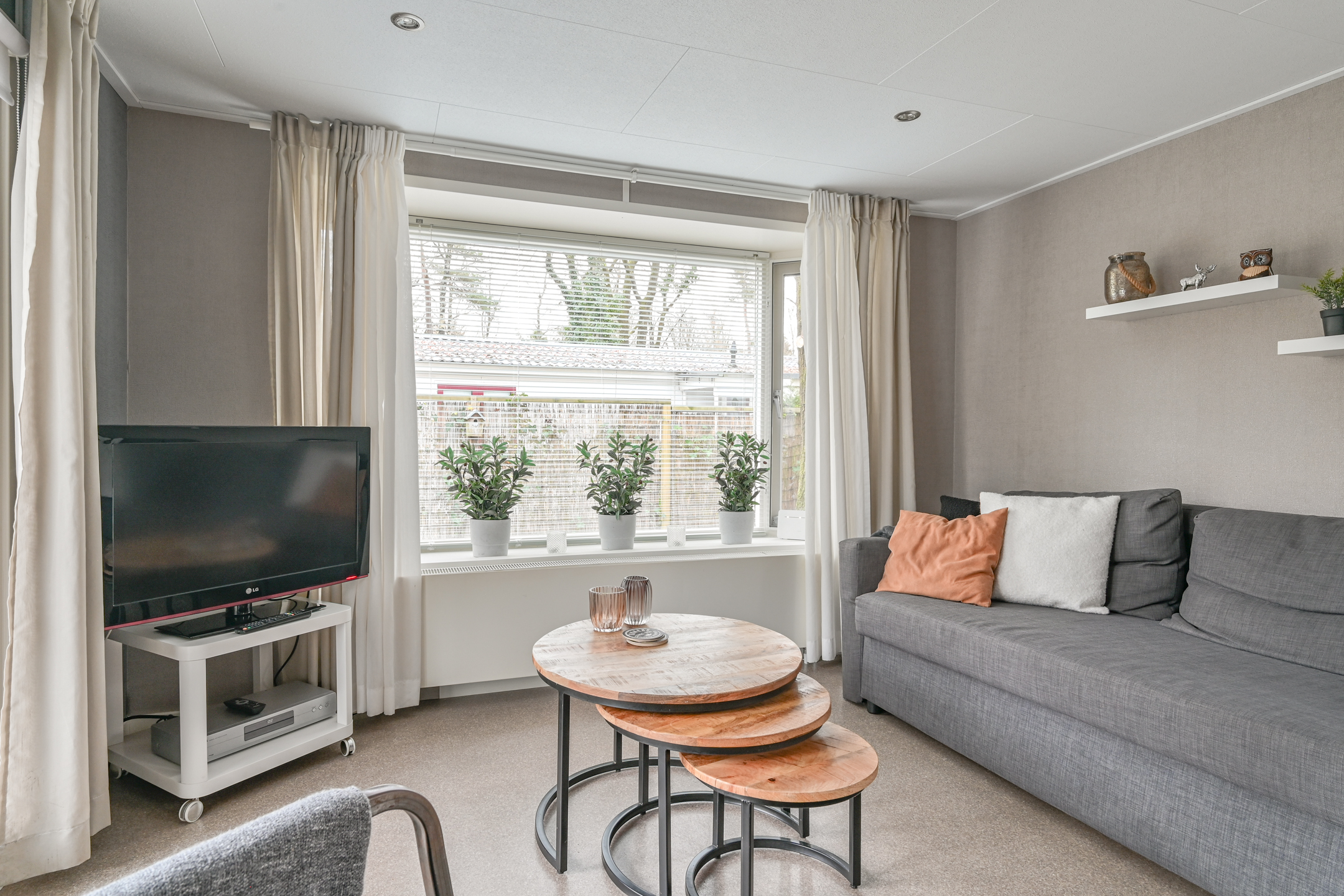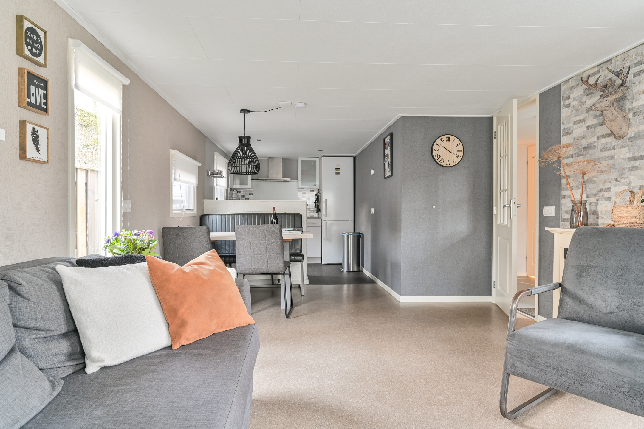 Binnen is een sfeervolle ruime woonkamer en keuken met alles erop en eraan. vanuit de hal met kapstok bereikbaar; toilet badkamer met douchecabine en wastafel meubel, ruime slaapkamer met (160 x 200) met grote kledingkast en 2e slaapkamer met stapelbed en kledingkast.