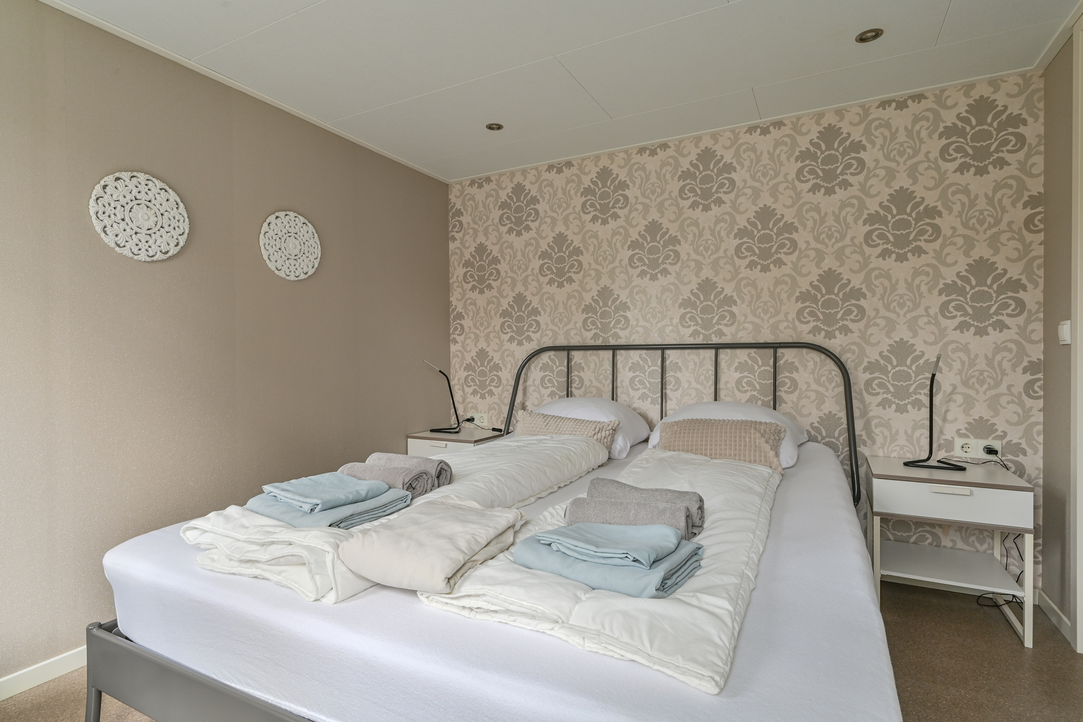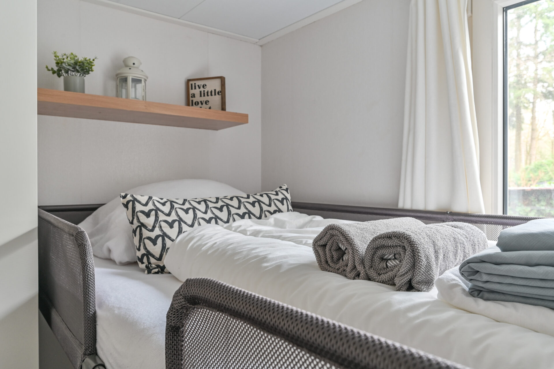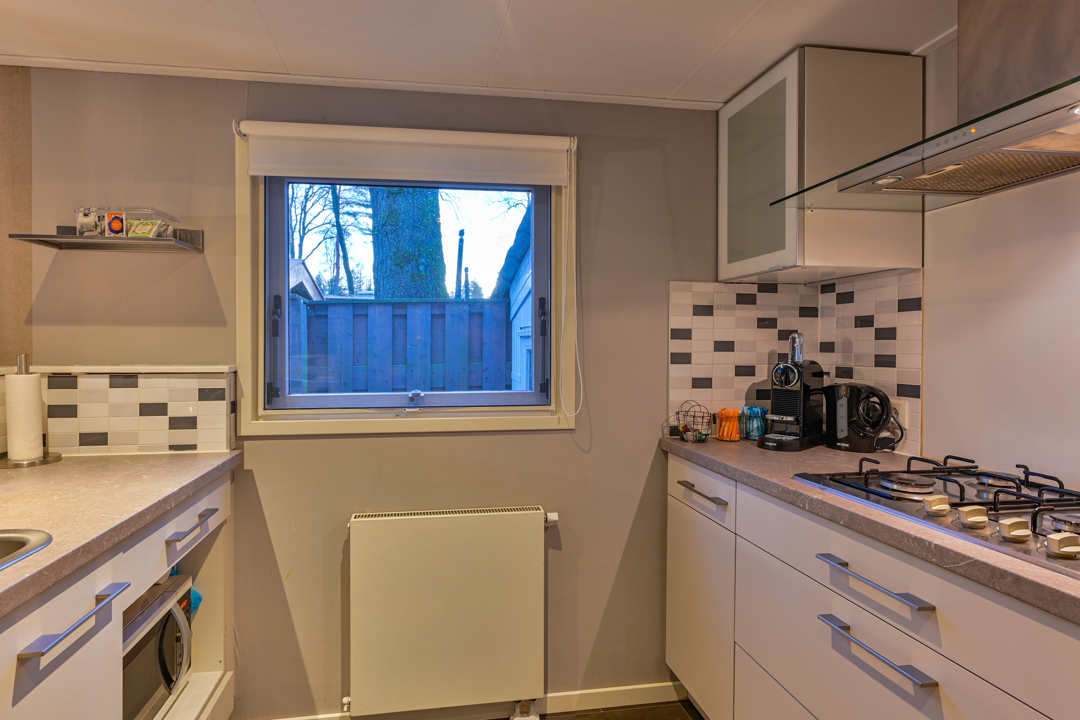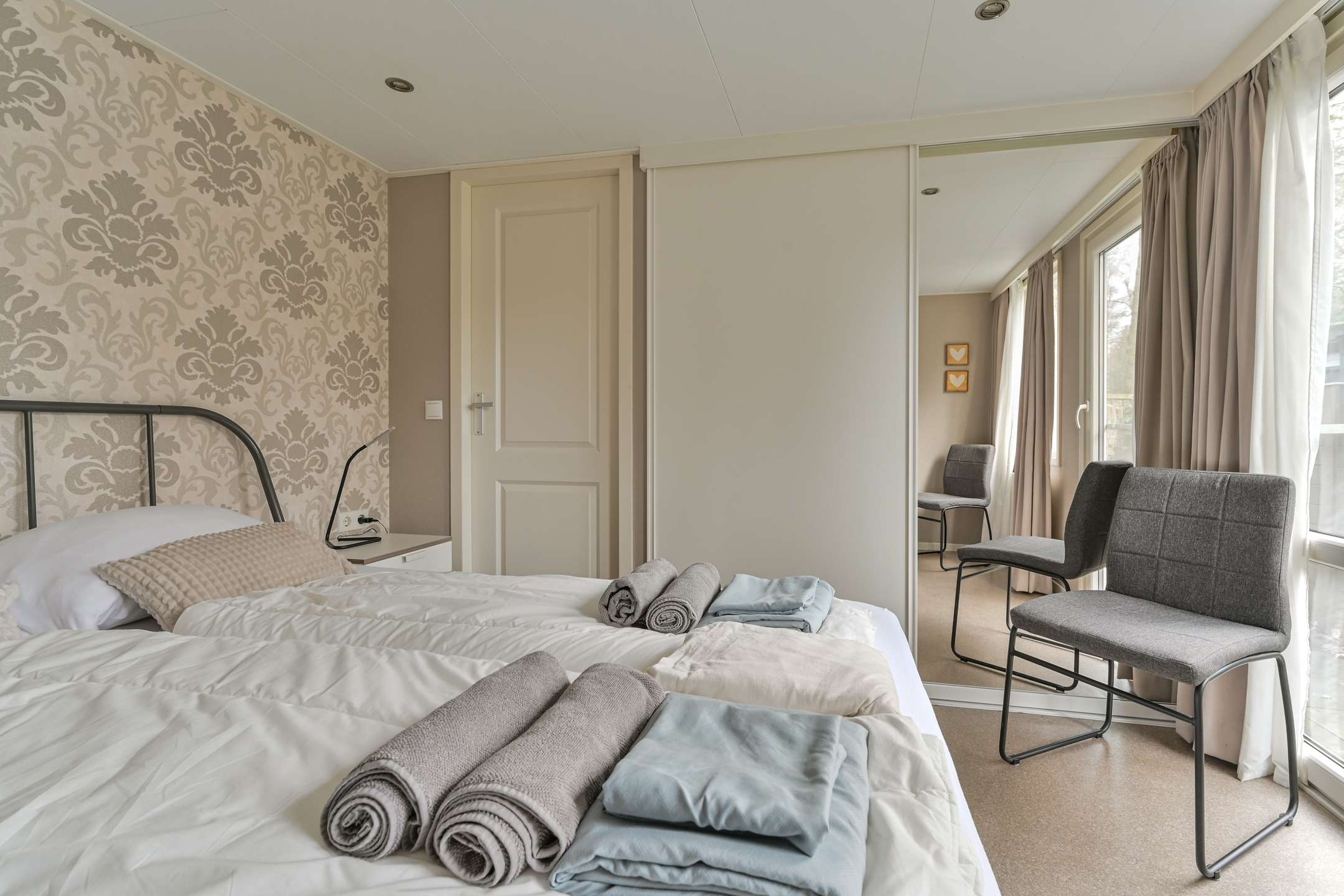 Het Chalet biedt een ruime comfortabele woonkamer met open keuken! 2 slaapkamers, Badkamer met wandmeubel, douchecabine, wasmachine & droger. Het toilet is apart van de badkamer. Als je de camping afloopt (op verschillende plekken mogelijk) sta je direct in het bos en mooie heidevelden waar je vogels, eekhoorntjes, herten, en zwijnen tegen kan komen! Er zijn vele wandel- en fietspaden.